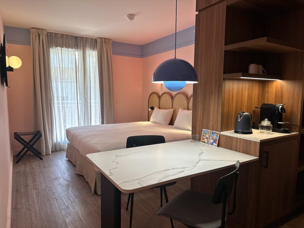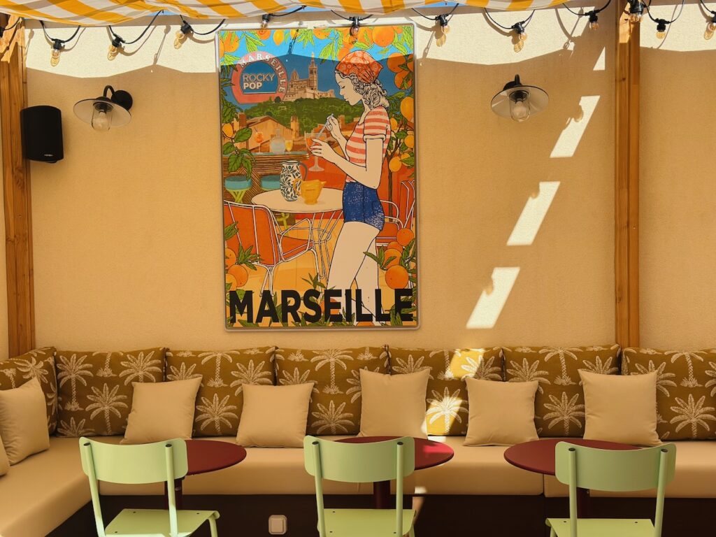 Romain Trollet et Romain Le Rol, le duo en charge de l’établissement marseillais veut casser les codes de l’hôtellerie classique en créant un lieu vivant, accessible et multi-usages. Avec ses 96 chambres (dont un penthouse pour 9 personnes !) le RockyPop Marseille séduit autant les voyageurs d’affaires (avec des superbes salles de réunion et des chambres transformable en studio) que les familles ou la bande de copains-copines en goguette.
