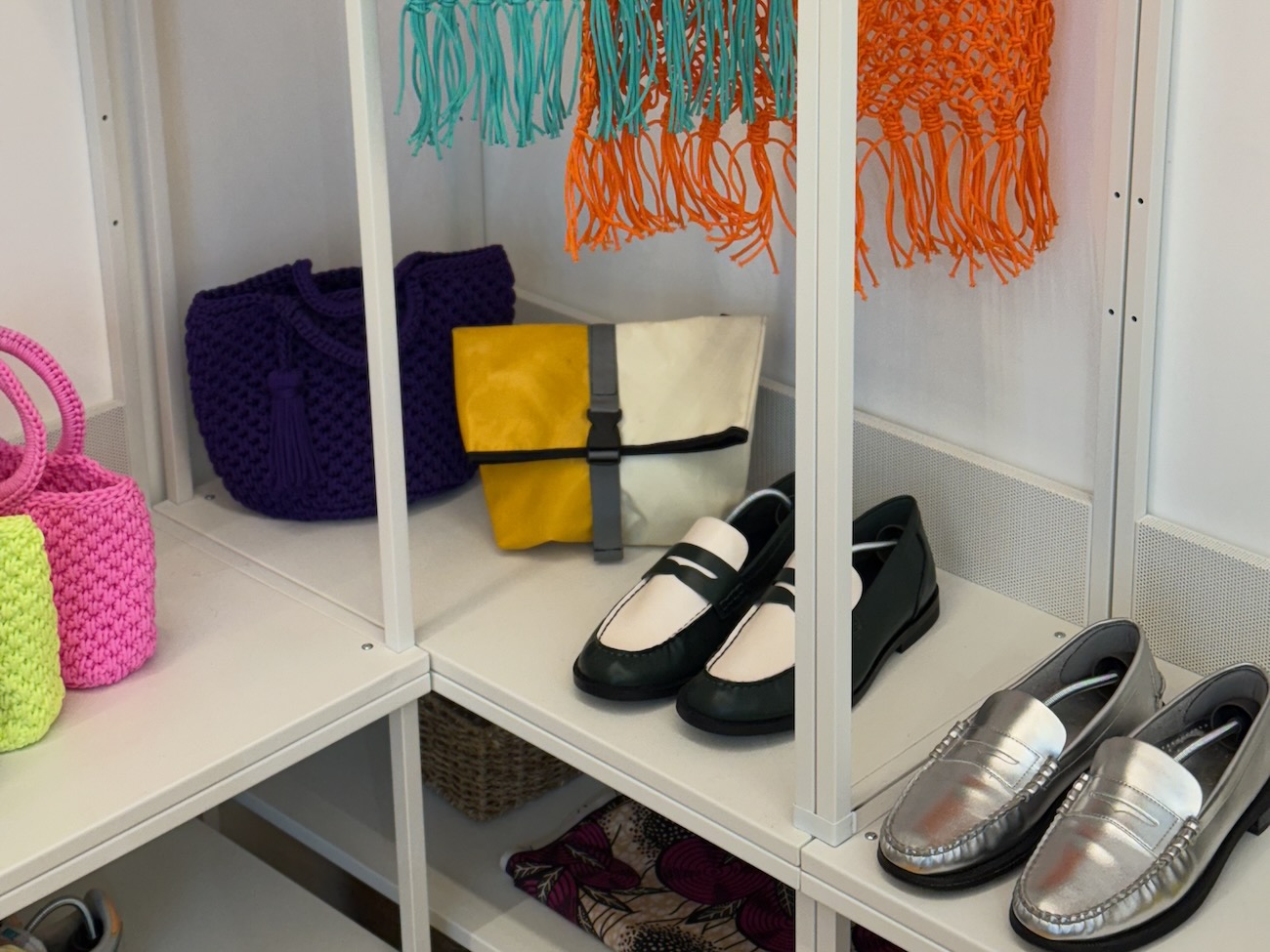 Dans la même veine, des sacs cabas monochromes et d’autres en bandoulière réalisés à partir de plastique recyclé. A cette sélection dont les tarifs ont été pensés pour garantir une rémunération plus équitable des créateur.