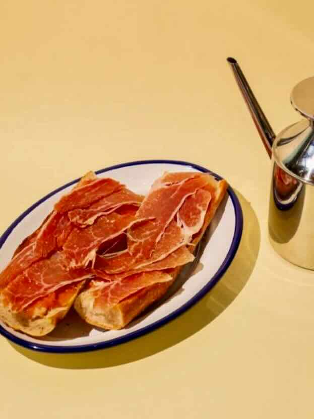 Pour la faim ? Une offre d’abord espagnole : pan con tomate, jambon ibérique belota (un véritable bonbon de cochon) ou encore le fameux bocadillo (pain, huile d’olive, jambon ibérique). Les douceurs (cakes, cookies, marbrés), incontournables du café, sont maison. La tradition française est également respectée, avec son lot de viennoiseries potelées (signées de la boulangerie Ludivine) et ses tartines beurrées.