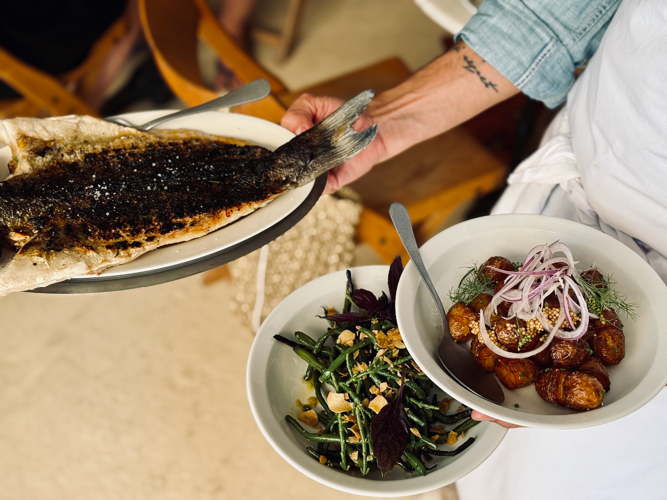 Au déjeuner dans le patio ombragé de filet de camouflage, au dîner à l’heure dorée en salle ou sur la terrasse, locaux et touristes se régalent désormais des créations du talentueux chef Thomas Assioma (Hôtel Présent, La Chassagnette ; Le Meurice).