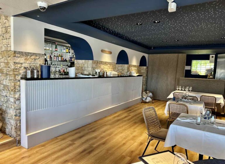 Deux mois de travaux auront suffit à convertir l’ancien restaurant portugais en « estiatorio » (i.e: restaurant grec pour les puristes) et pour cause : les ex-propriétaires des lieux l’avaient elles-mêmes acquis auprès d’un Héllène de naissance. Le blanc domine dans l’établissement qui, inmanquablement fait la part belle aux tables de bois rustiques.