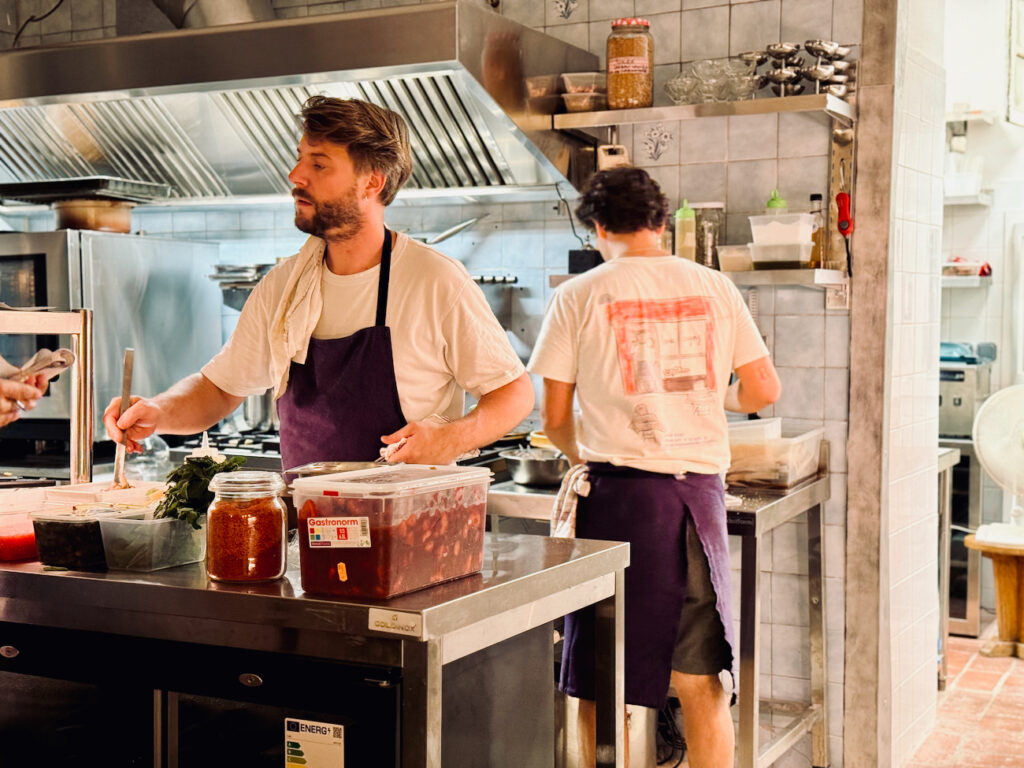 Pour étancher la soif, le binôme – et leurs compagnes Arianne Lafabrie et Léna Roche qui oeuvrent aussi au succès de la taverne et notamment en salle – ont sourcé de belles potions sans alcool venues tout droit de la botte – limonata, cedrata, mandarinata et chinotto – et d’autres dénichées chez leur voisin Bibine Club.