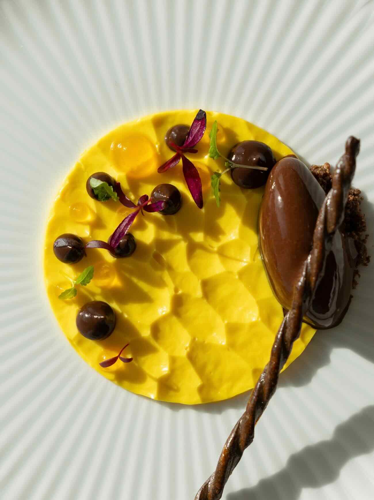 La fraîcheur s’invite avec un rafraîchissement à la fleur d’oranger et farigoule flambée, avant de laisser place à des desserts d’exception, comme le crémeux chocolat Caraïbe 64 % de la valrhona ou le mariage subtil du citron et de l’anis au pastis millésimé.