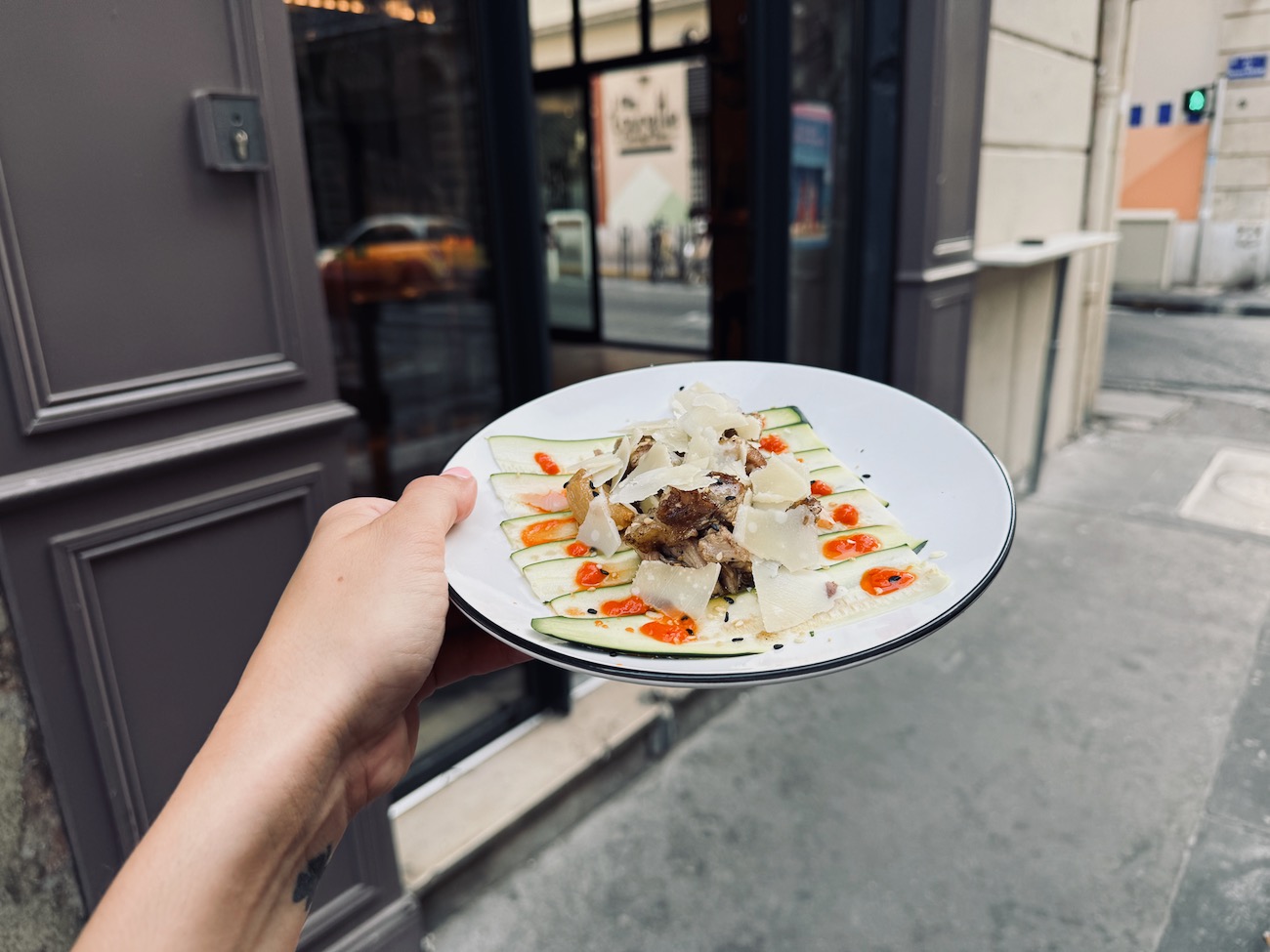 On s’en régale sur les mange-debout de la petite terrasse ou au comptoir à l’américaine, avec un menu renouvelé, fidèle à la saisonnalité et réalisé à partir de produits sourcés à proximité.