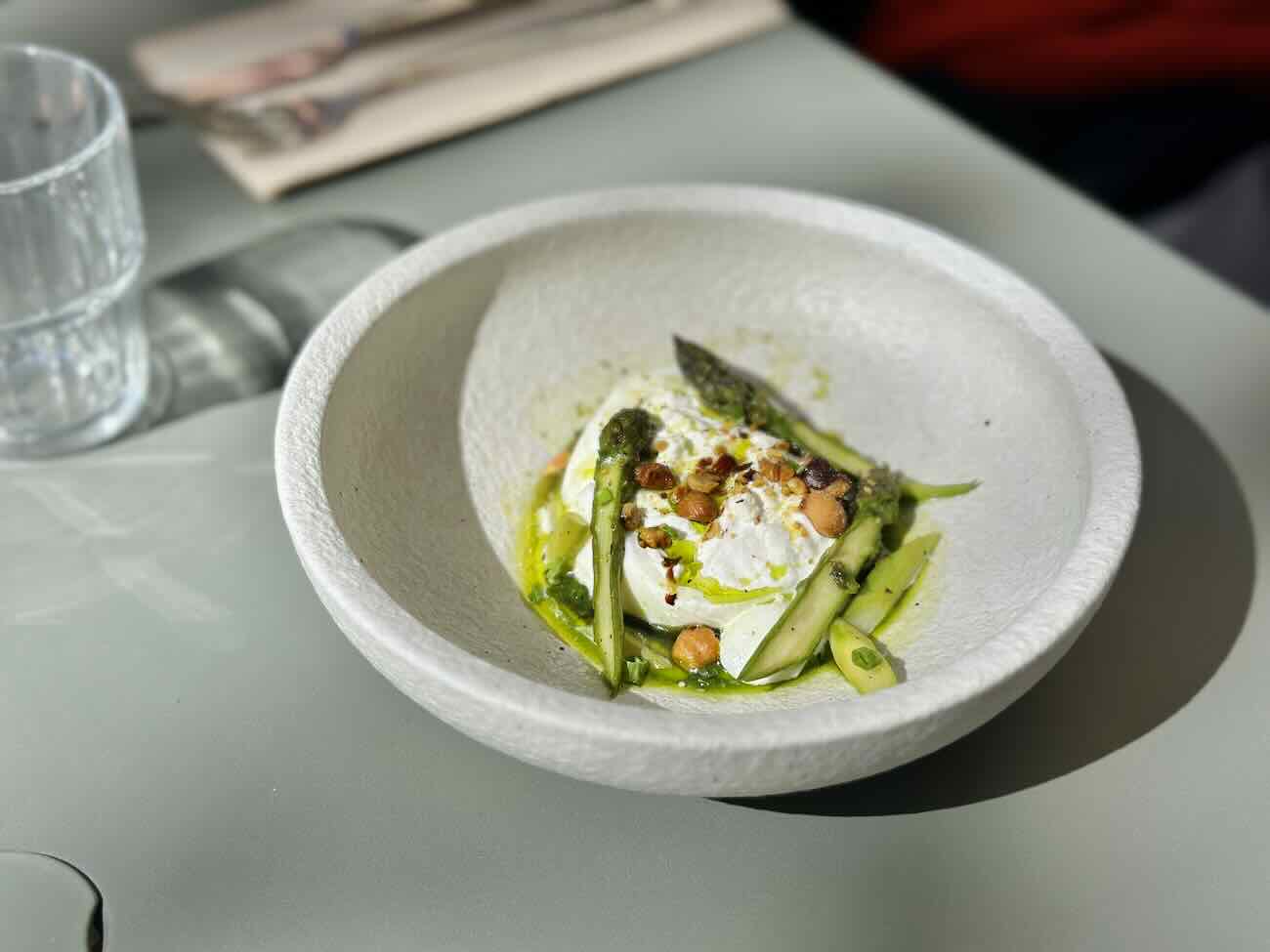 Ce jour-là cela se traduira dans recettes par une délicieuse burrata à la truffe d’été, asperges vertes, pesto à l’ail des ours, noisettes torréfiés et des carottes rôties, caramel au thym, crème de feta et grenade ultra parfumée.