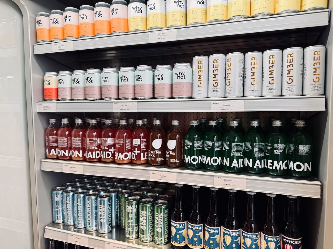 Mais on craque surtout pour des jus extraits minute, conditionnés dans de jolies canettes transparentes compostables floquées Hokis.