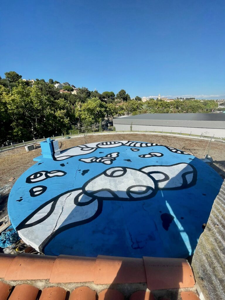 À l’Estaque, un bâtiment emblématique des années 60 - surnommé le « Camembert Cousteau » est voué à la démolition. Il s’est vêtu dernièrement des fresques de 15 artistes réunis en collectif afin de sensibiliser le public à son histoire et à sa préservation comme patrimoine marin.