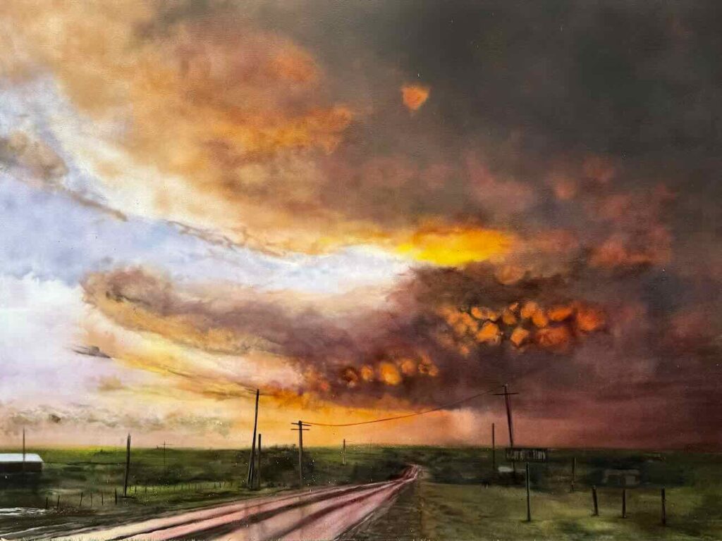 J’essaie de m’éloigner de plus en plus du figuratif et d’avoir un fil rouge dans mes séries. Dans la dernière, il s’agit des nuages. J’ai eu l’idée de ce thème en regardant une série sur les chasseurs de tornades. Ils sont quelques-uns sur la planète et se filment beaucoup. Les formes, les couleurs de ces nuages m’ont fort rappelé le travail de Turner que j’ai découvert dernièrement – car comme tu le sais je ne suis pas un grand érudit en peinture. C’est en voyant le film de Mike Leigh que j’ai eu envie d’effectuer des recherches sur son travail que j’ai trouvé passionnant. Et puis il y a Gérard Richter dont je suis allé voir l’expo extraordinaire à la fondation louis Vuitton qui est parti du figuratif pour aller vers l’abstrait. Les mers, les ciels, j’ai réalisé que lui avait déjà tout fait.