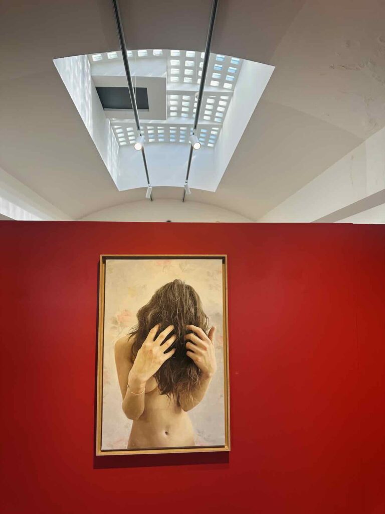 Dès les premières salles, Bourdarel confronte le regard du visiteur à la beauté nue, héritée de la grande tradition picturale. Ses odalisques, Vénus ou nymphes semblent issues d’un âge d’or classique, mais sous la surface lisse affleure la tension : la chair, tout en lumière, s’alourdit d’ombres, de bijoux ou de feuillages qui l’entravent.